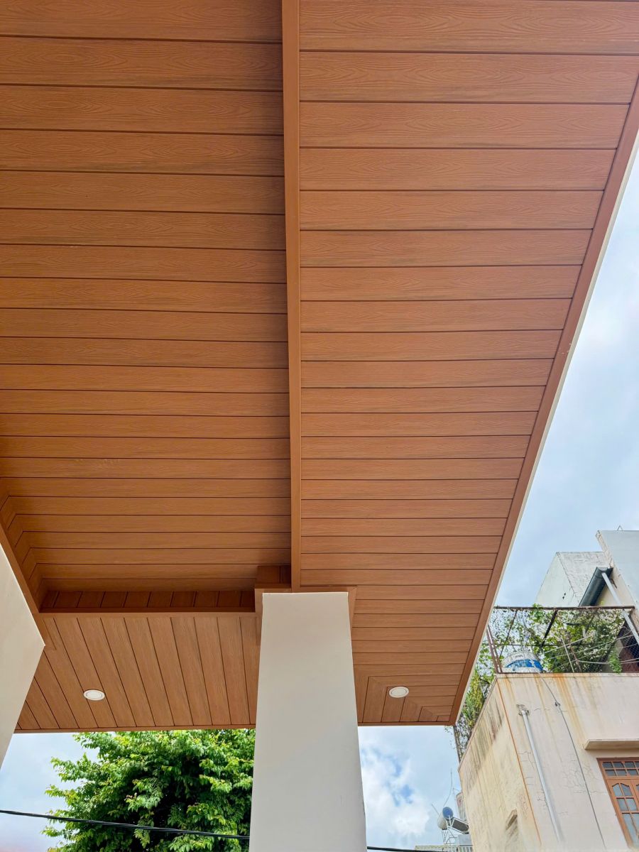 Ứng dụng: Ốp mặt tiền, lam che nắng, ban công, hàng rào, trần ban công, giàn pergola… mang lại vẻ sang trọng hiện đại mà vẫn hài hòa thiên nhiên. Đây là giải pháp tối ưu cho các công trình ngoài trời yêu cầu thẩm mỹ cao và tuổi thọ bền bỉ.