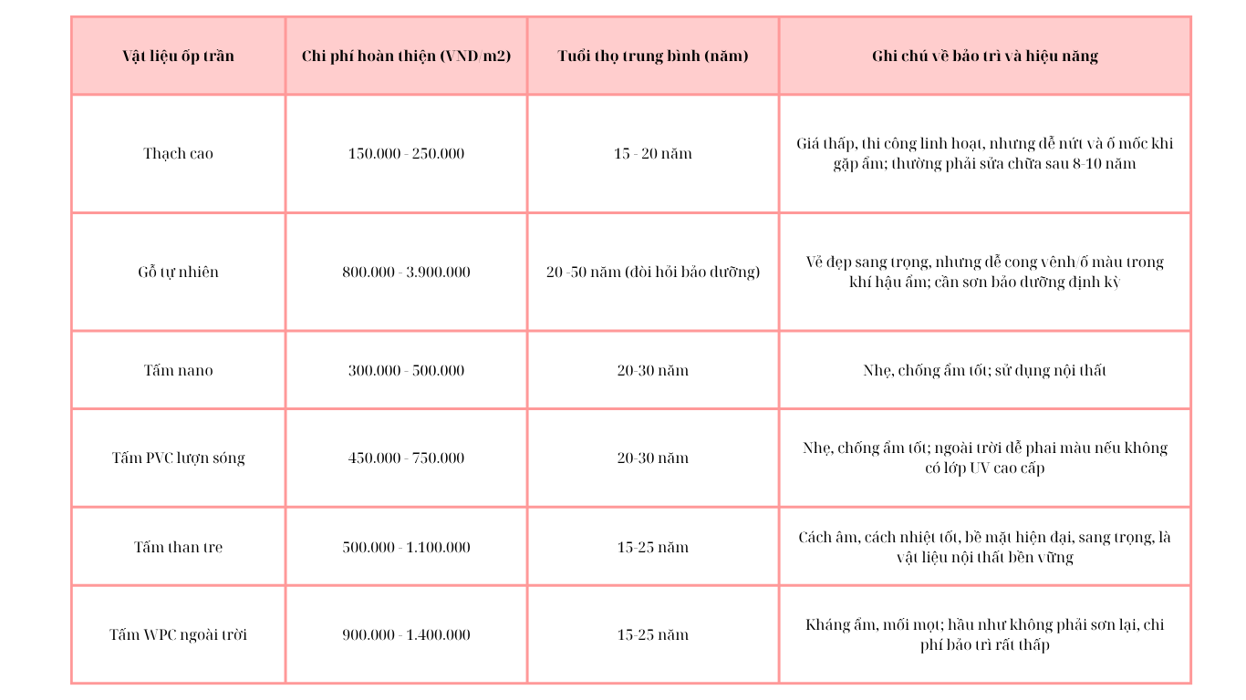 - Tháo dỡ trần cũ, đi lại dây điện, chống ẩm mái: 50–120 k đ/m² tùy tình trạng.