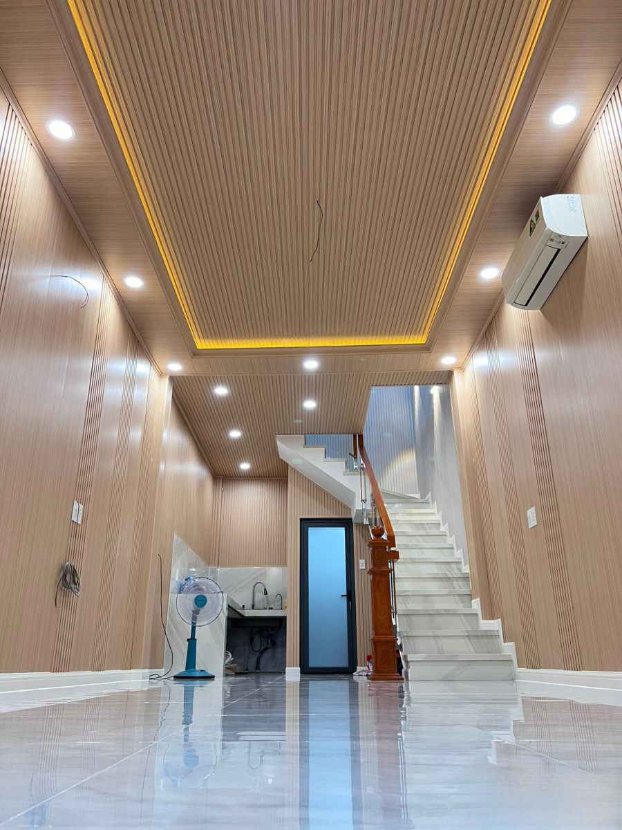 Tấm Nano vân gỗ là thế hệ vật liệu ốp trần – tường cải tiến, kết hợp vẻ đẹp tự nhiên của gỗ với độ bền cao và tính linh hoạt của nhựa kỹ thuật. Bề mặt phủ film vân gỗ tinh xảo, hiệu ứng 3D chân thật, cho không gian sang trọng mà vẫn bền vững trước khí hậu nóng ẩm của Việt Nam.