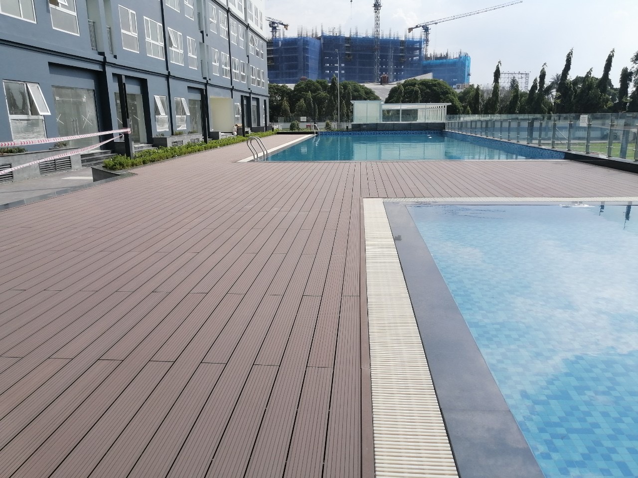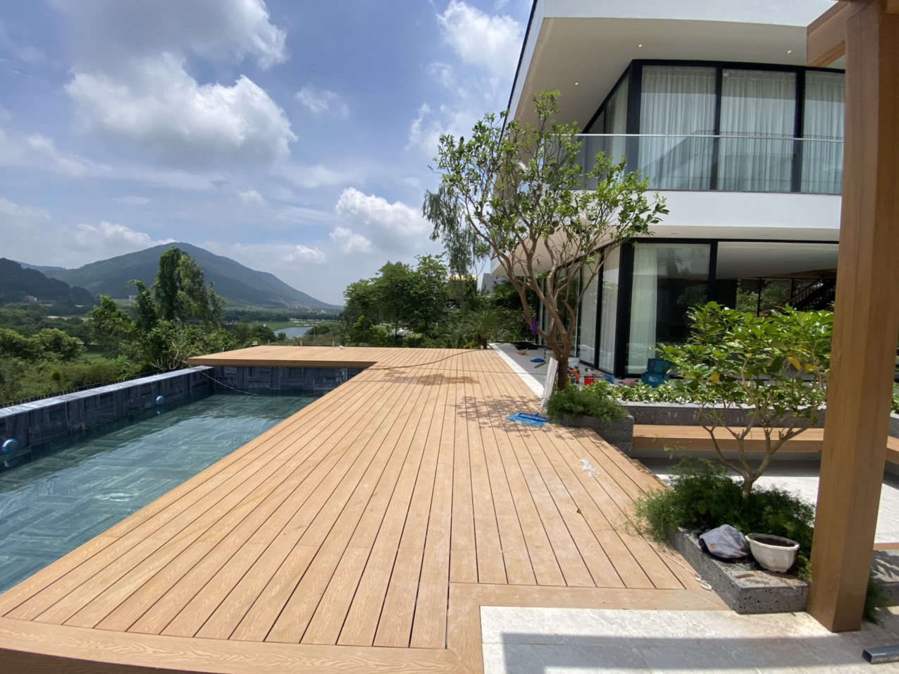 - Độ bền thời tiết: Không co ngót – nứt nẻ cực đại như gỗ tự nhiên; chịu mưa nắng, hơi ẩm ven hồ bơi.
