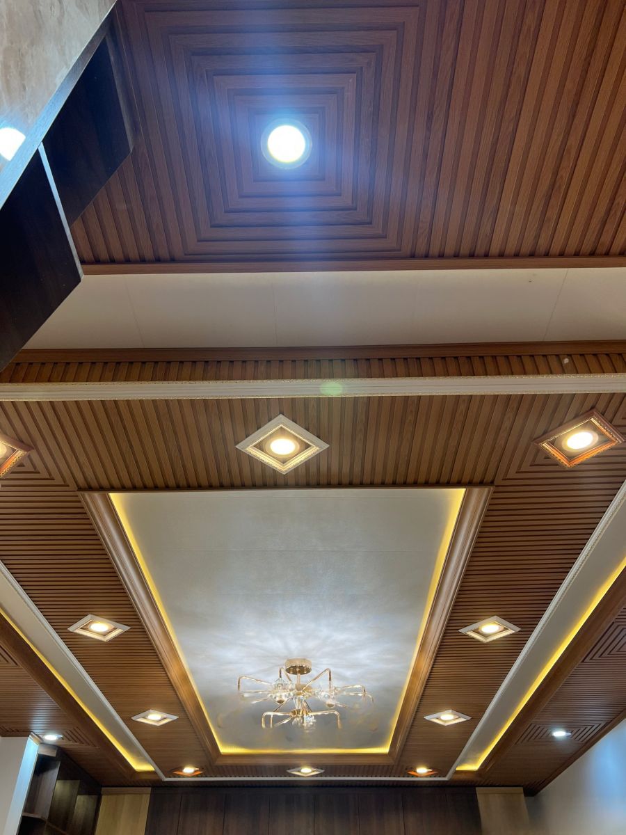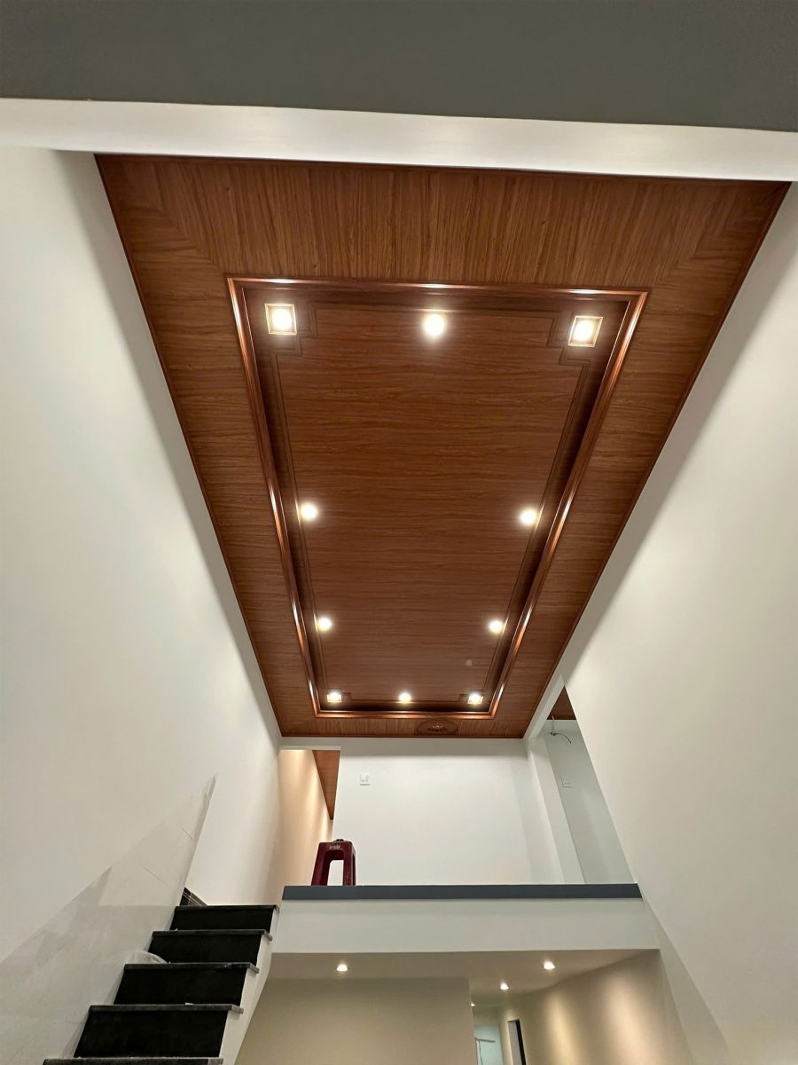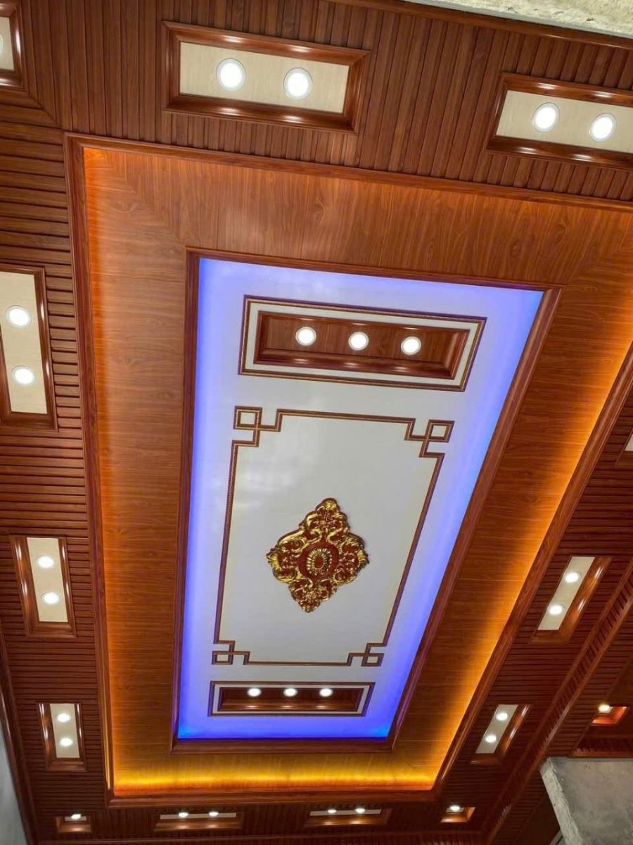 - Dùng bản nano soi rãnh chạy dọc phòng kết hợp downlight và khe hắt trần giật cấp.