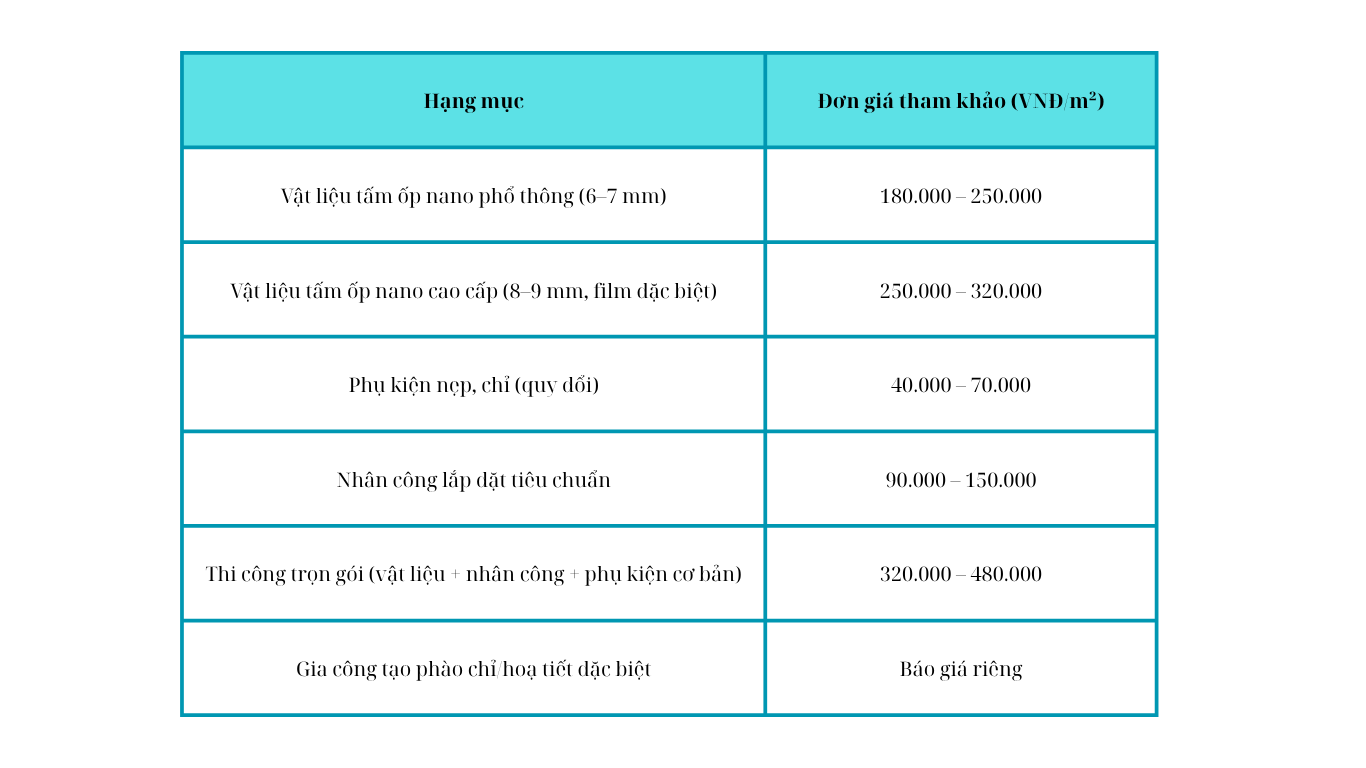 8. Báo Giá Tấm Ốp Nano & Chi Phí Thi Công