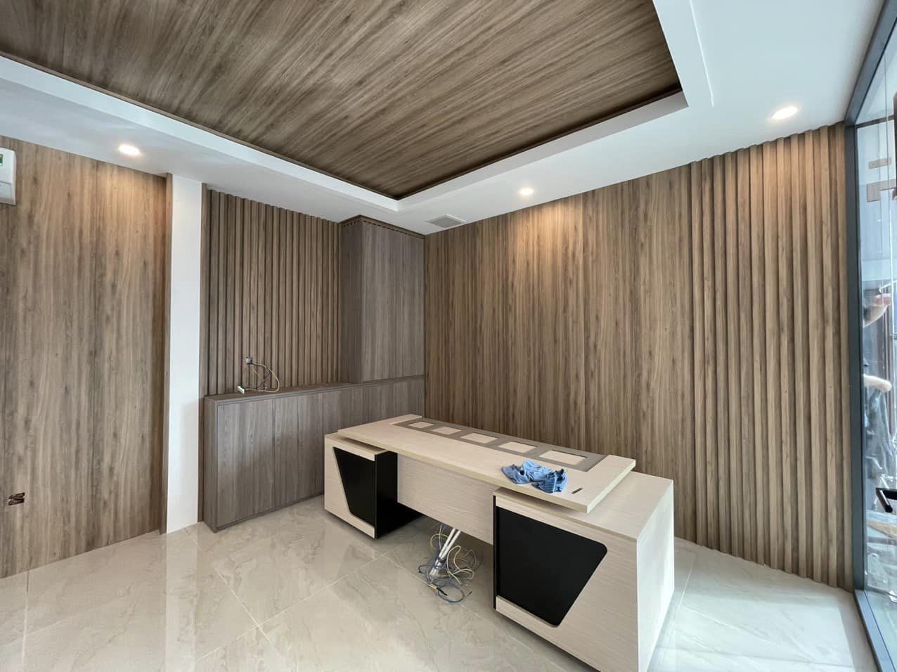 - Mảng feature wall khu vực reception tạo ấn tượng chuyên nghiệp.