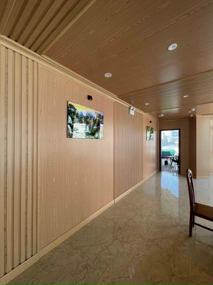 - Ốp vách hành lang khách sạn, homestay nâng cấp cảm giác ấm cúng.