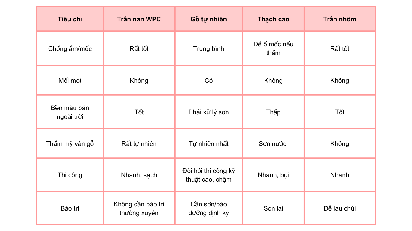 5. So Sánh Với Các Vật Liệu Trần Khác
