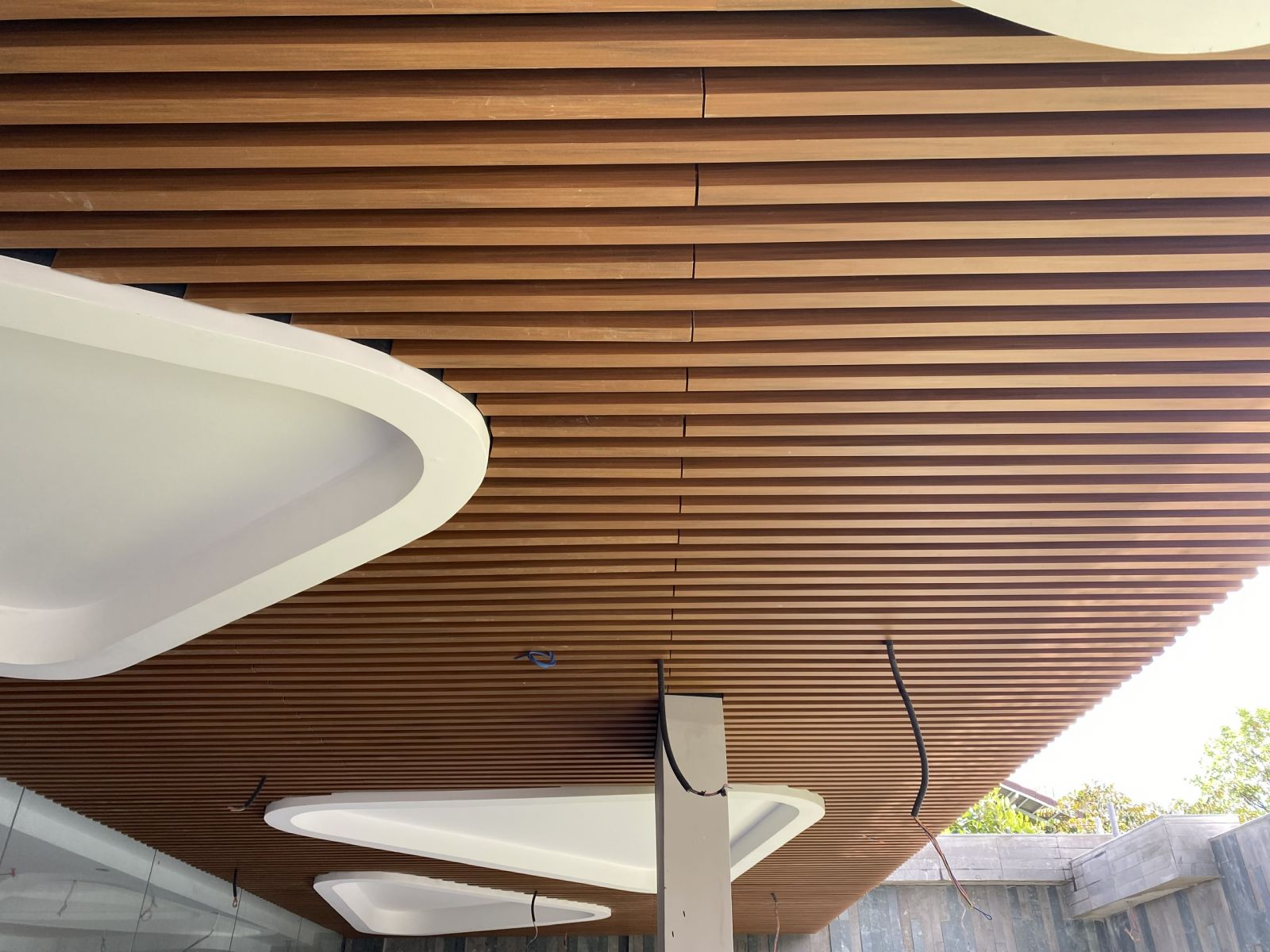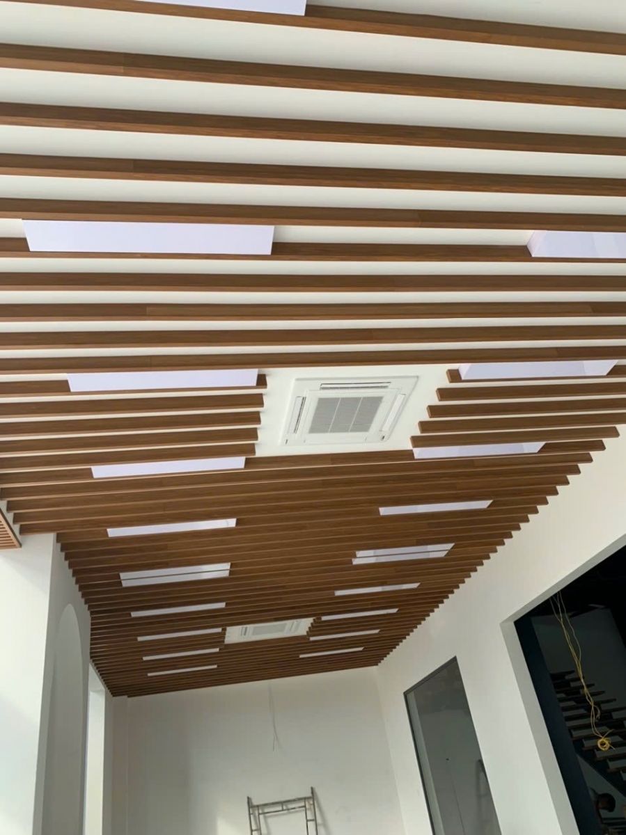 Giá trần nan gỗ nhựa composite thường được tính theo m² hoàn thiện (vật tư + nhân công). Giá thi công hoàn thiện dao động 800.000 VNĐ/ m² – 1.200.000 VNĐ/ m²