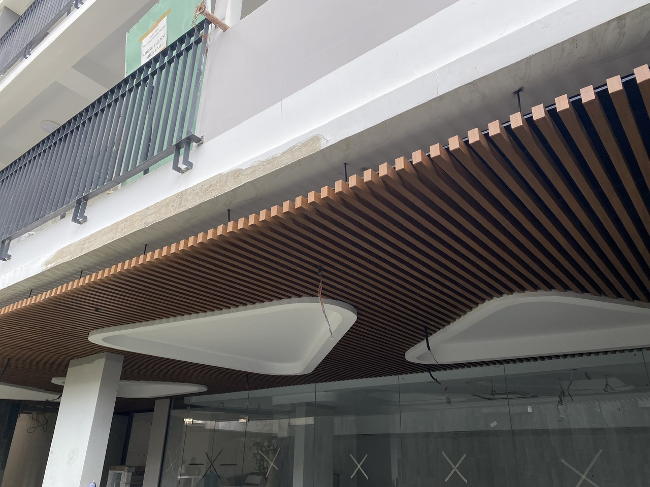 Các nan tạo nhịp điệu tuyến tính, hỗ trợ kéo dài cảm giác không gian, che khuyết điểm hệ thống kỹ thuật (ống, dây) mà vẫn cho phép thoáng khí.