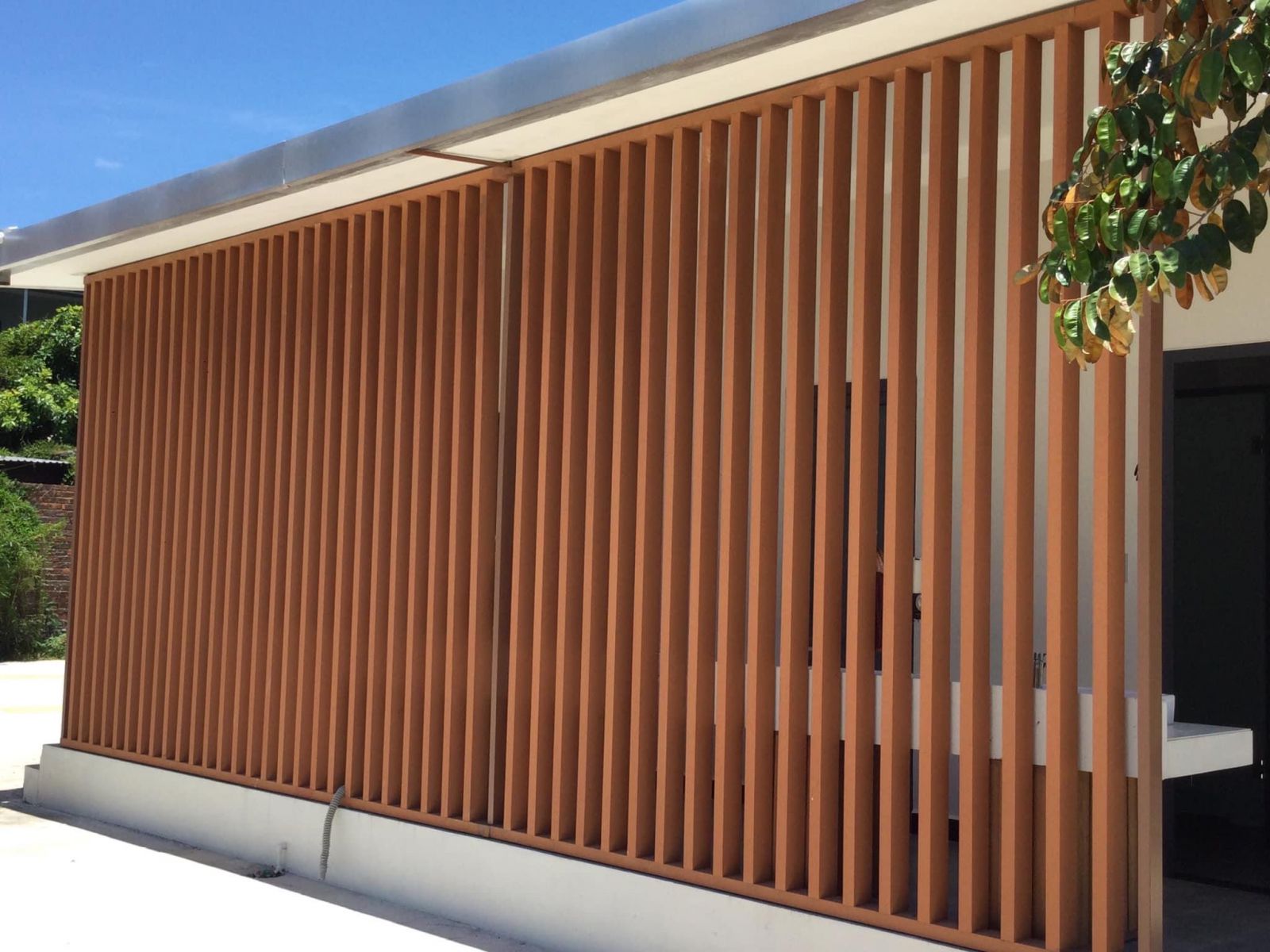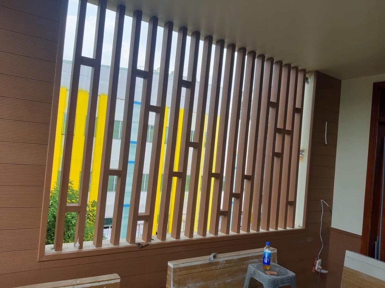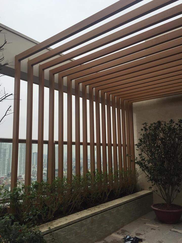 Đa dạng không gian lắp đặt, vách ngăn nhựa giả gỗ còn được lắp đặt tại ban công của các ngôi biệt thự, nhà riêng để tạo nên một không gian thoáng đãng cực đẹp.Với các thanh gỗ được bố trí ở khoảng cách đều nhau, vách ngăn gỗ nhựa composite tạo nên các khe hở cho ánh sáng chan hòa vào không gian, tăng thêm sự thoáng mát và sức sống cho ban công, nhất là khi kết hợp trang trí cùng các loại cây cảnh xanh mát.